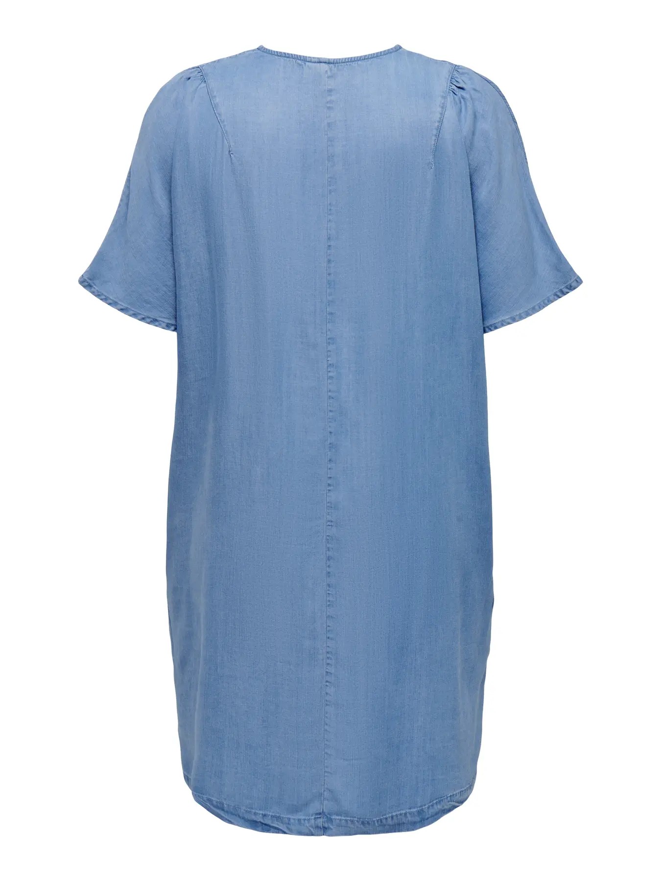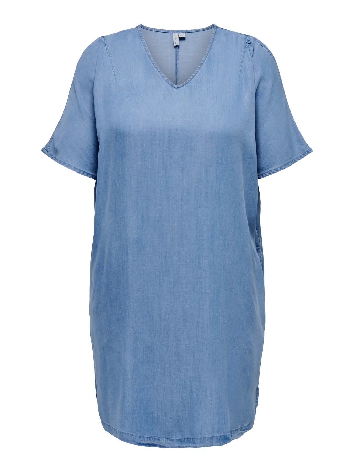 kortermet jeanskjole. Deili og myk tencel jeans kjole med v-hals kort erm og lommer i siden. Normal i størrelsen.
