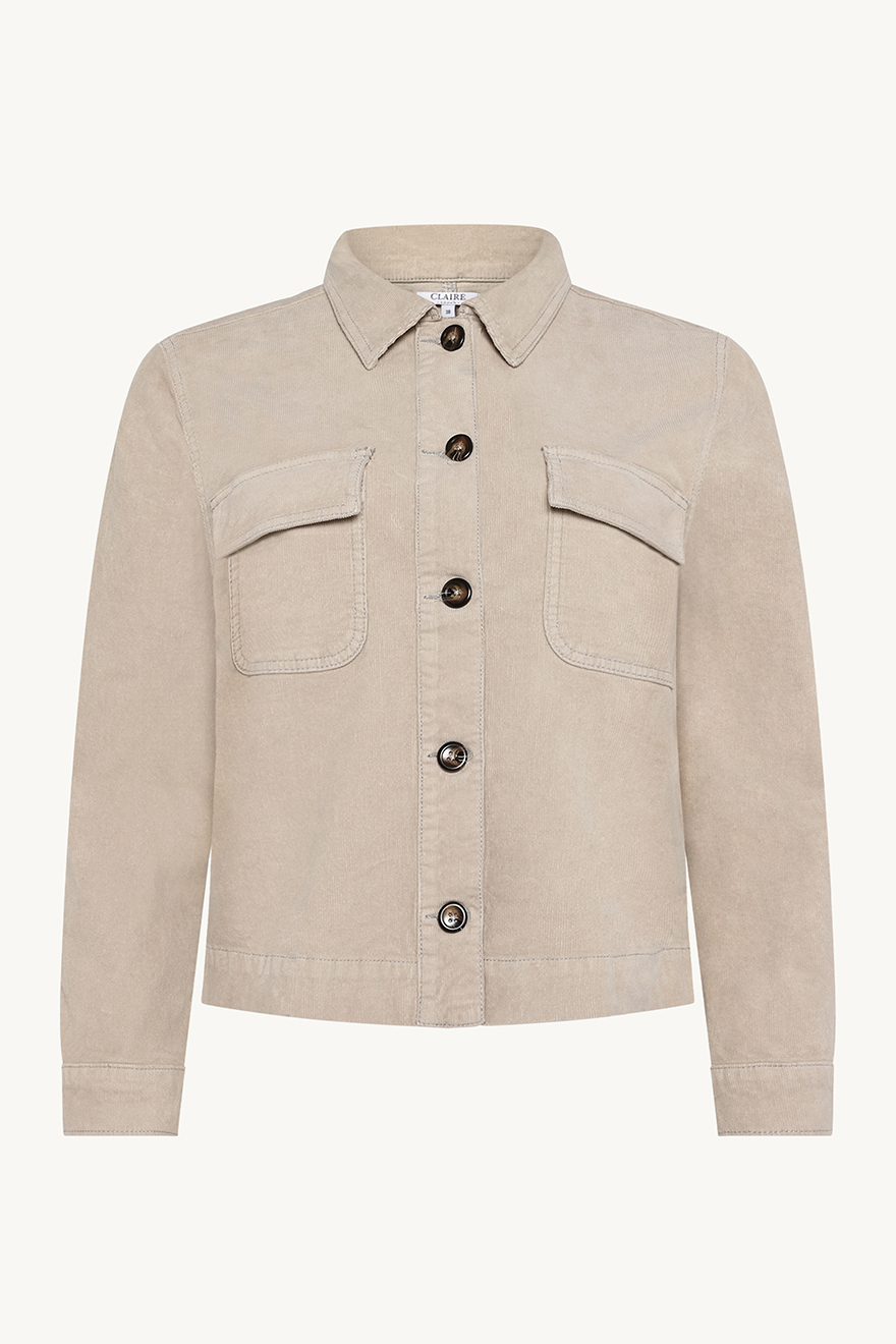 Jakke fra Claire Woman. Rå-tøff jakke i kordfløyel med helknepping langs front. Jakken har 2 stk brystlommer og krage. Normal i størrelsen. Inneholder 78% bomull, 20% modal og 2% elastan. Bruk den som den er over ethvert antrekk. Match den gjerne med tilhørende skjørt.