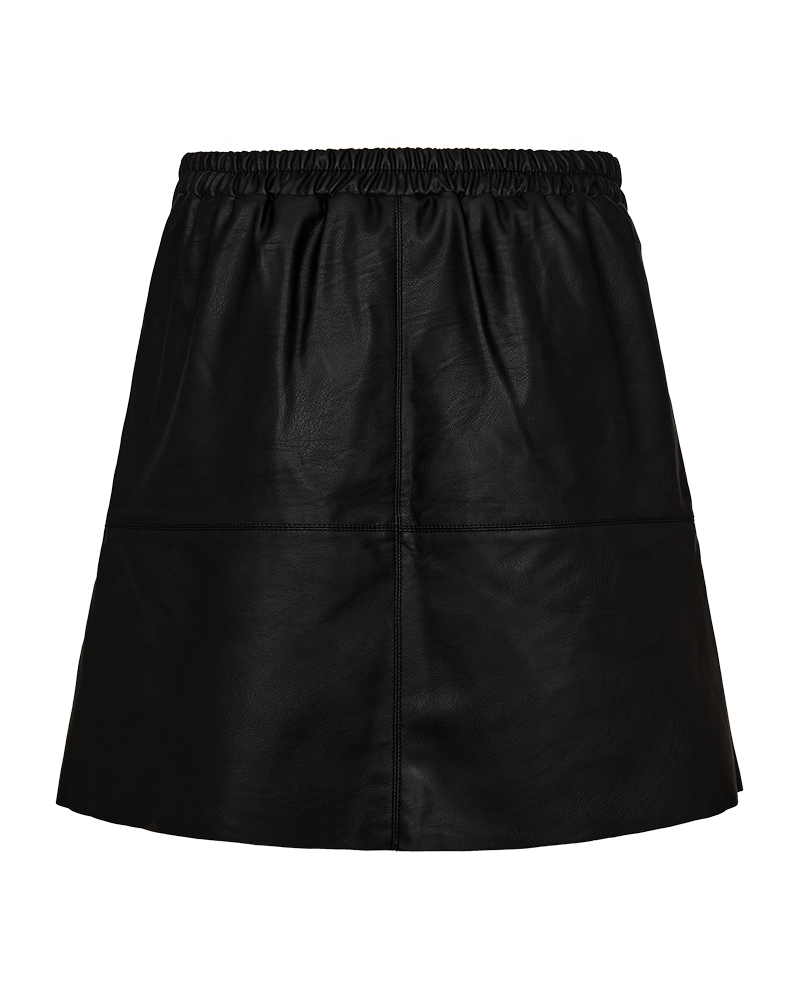 Skjørt fra FreeQuent. Skjørt i skinnimitasjon med lommer fremme på sidene. Skjørtet har strikk bak i linningen, og er slett i linningen fremme. Normal i størrelsen. Inneholder 100% polyester. Et perfekt skjørt å style til både hverdag og fest. En av sesongens must-haves i garderoben!