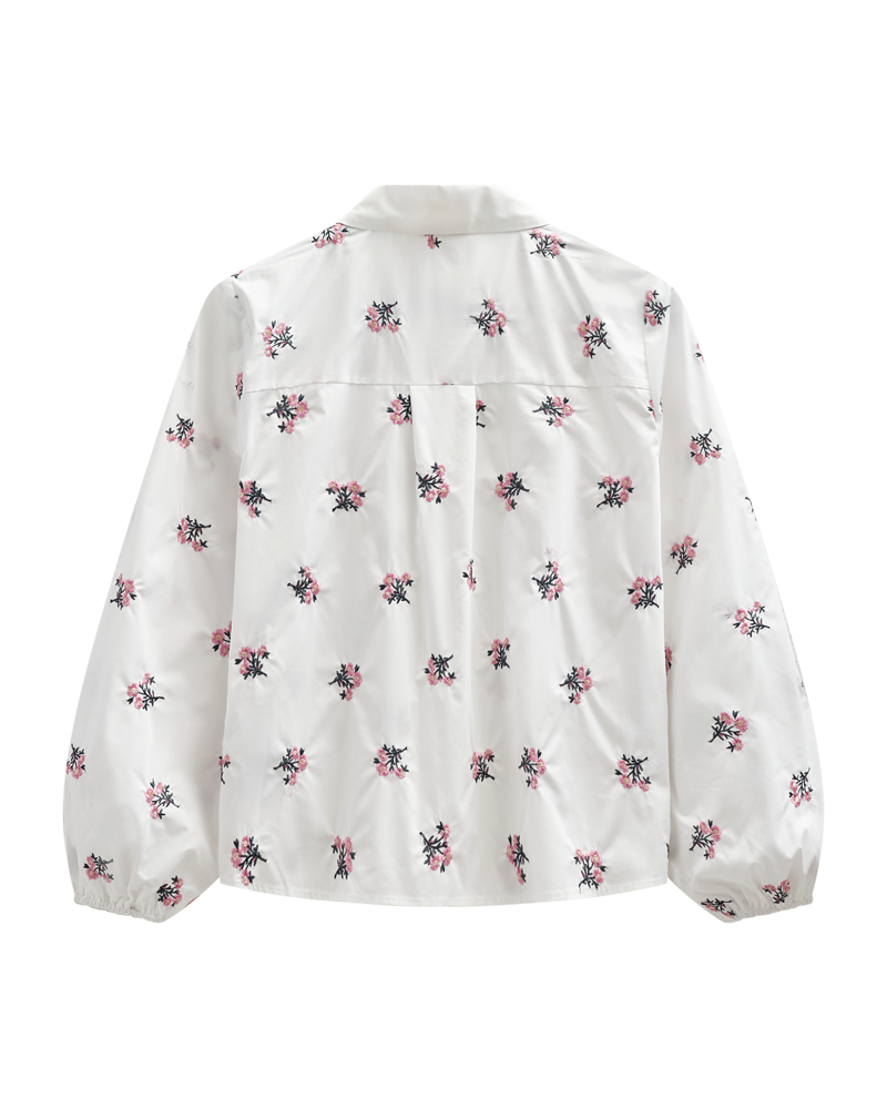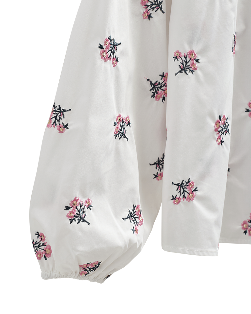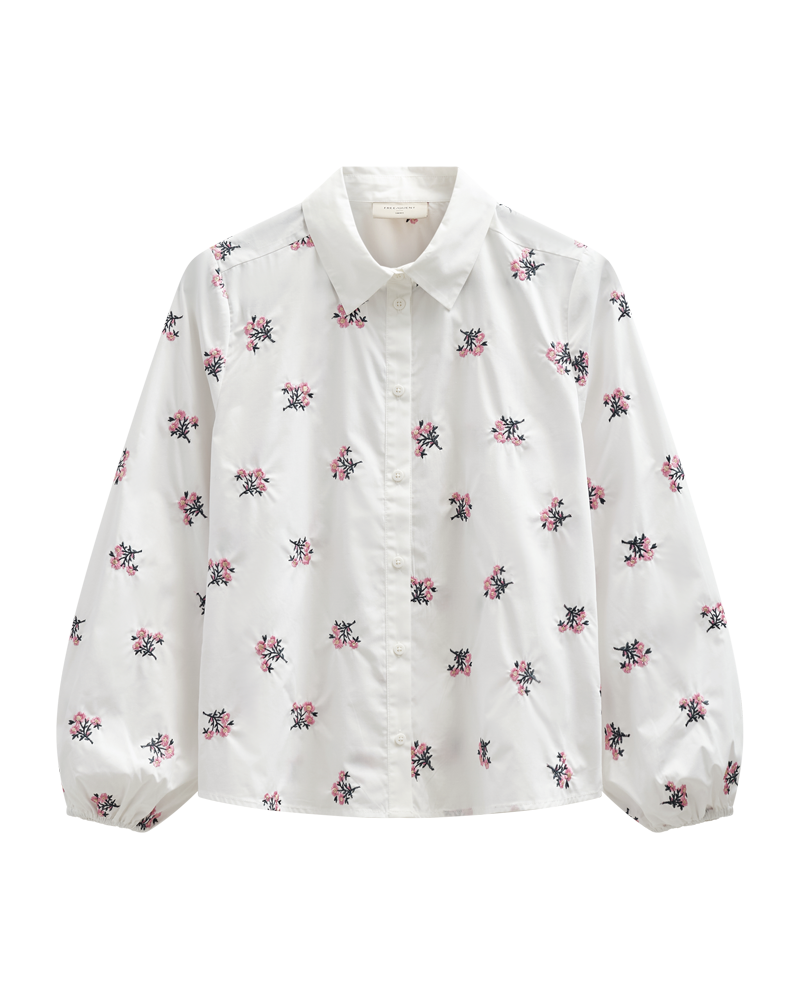 Skjorte fra FreeQuent med nydelig blomster broderi. En skjorte man kan bruke året rundt, og kan styles med en jeans, eller under en strikk/blazer.