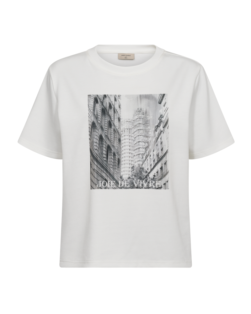 Myk og komfortabel T-shirt med print . Tekst: Joie de vivre= livsglede. Passformen er boxy. 50% Polyester 45% Visciose 5% Elastan.