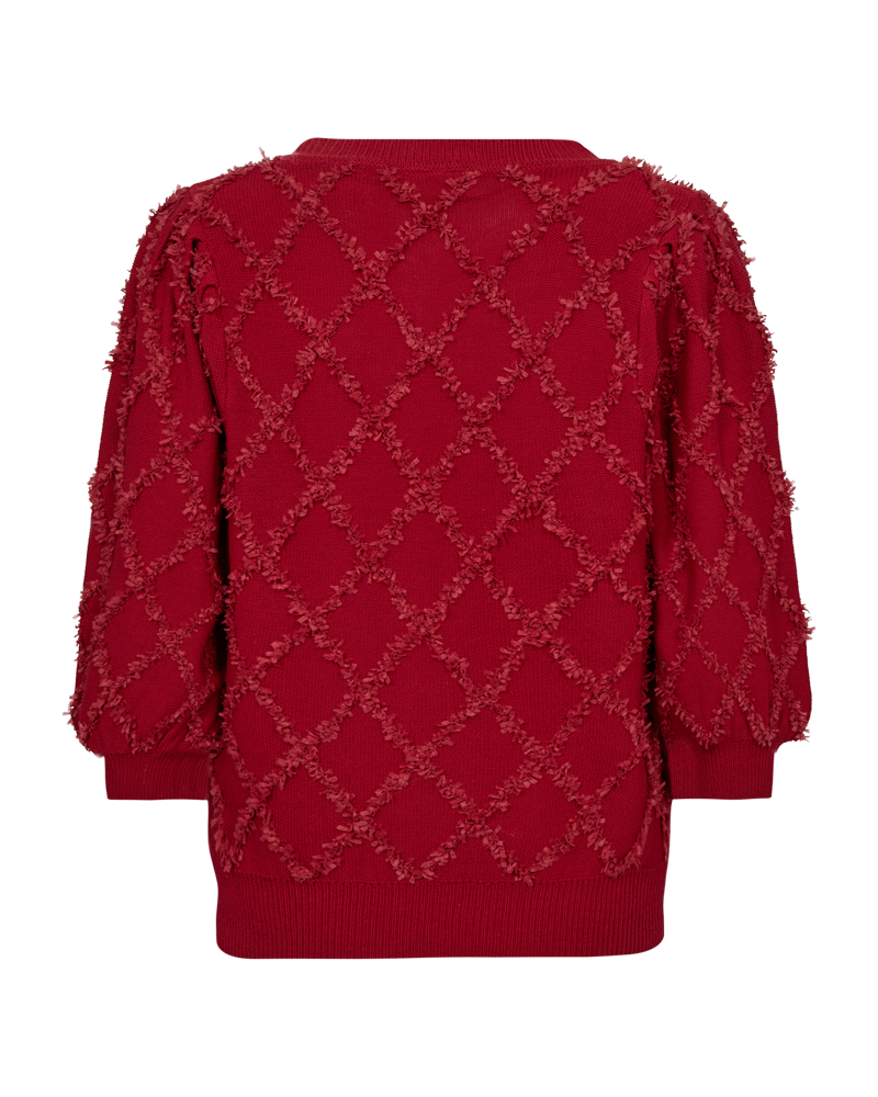 Genser fra Freequent En nydelig genser med rutete mønster i struktur, 2/4 ballongerm med ribkant. Rund hals med ribkant og ribkant nederst. Normal i størrelsen. 100% bomull. Perfekt genser til en fin dressbukse til finere anledninger, eller hverdags med jeans.
