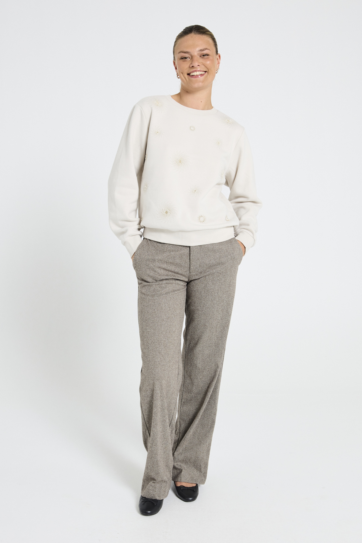 Nydelig, tykk dressbukse nydelig passform. Denne passer til alle anledniger og kan kombineres med alt fra t-skjorte til bluse og genser. Med beltehemper er denne lett å style med belte. Normal til stor i størrelsen. Inneholder: 100% polyester.