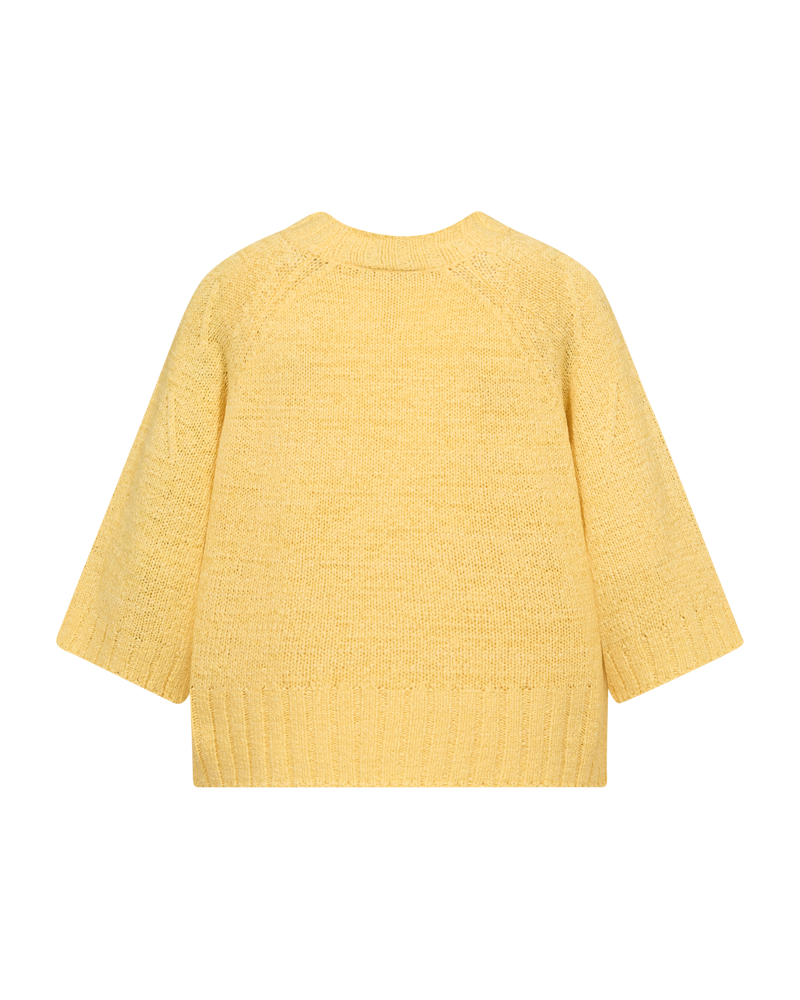 Genser fra FreeQuent. Lett og behagelig strikket genser med raglan erm 274 armlengde, rund hals og ribb kant nede. Normal i størrelsen,