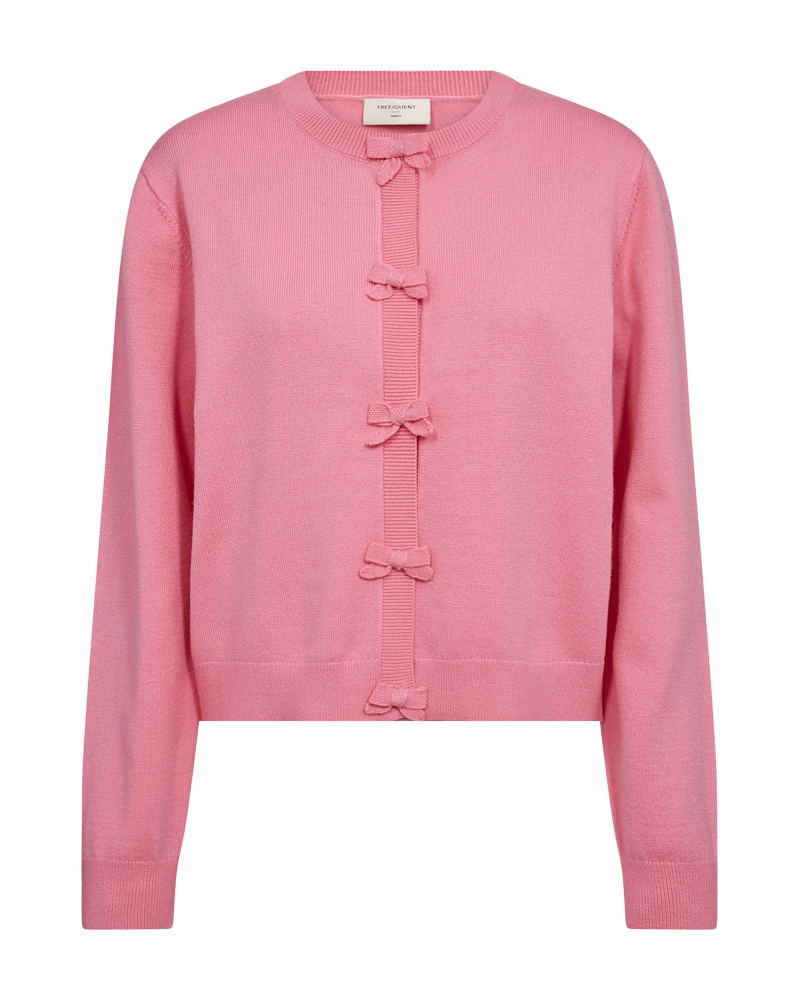 Cardigan fra FreeQuent. Cardigan med rund hals og lange ermer. Har kneppelukking med sløyfe detalj. 50% Viscose. 30% Polyester. 15% Polyamide. 5% Elastan.