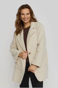 Beige jakke fra 2Biz En jakke med en knapp, vid krage og to lommer på fremsiden. Lengde til midt på låret, lang og vid arm. Normal i størrelsen, dette er en vid modell. 100% polyester. En perfekt og lett jakke til å bruke til en hver anledning.