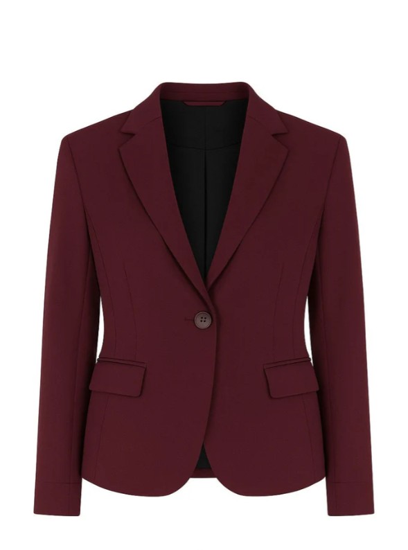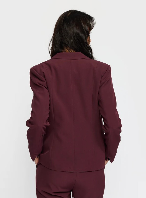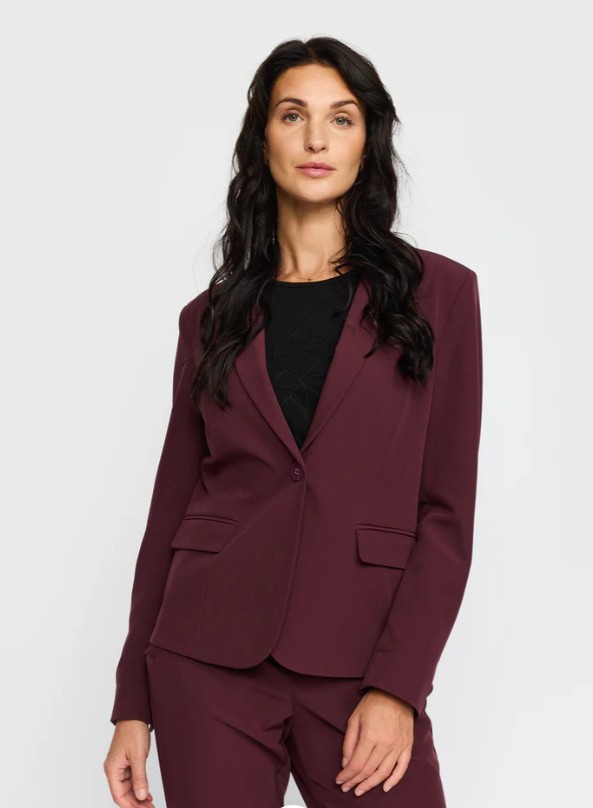 Dressjakke fra 2-biz. En klassisk og feminin fasson på jakken, med 1 knapp i front lukkingen, jakken har lommer. Normal til litt små i størrelsen, vipper man bør man gå opp. Finnes matchende bukse til.