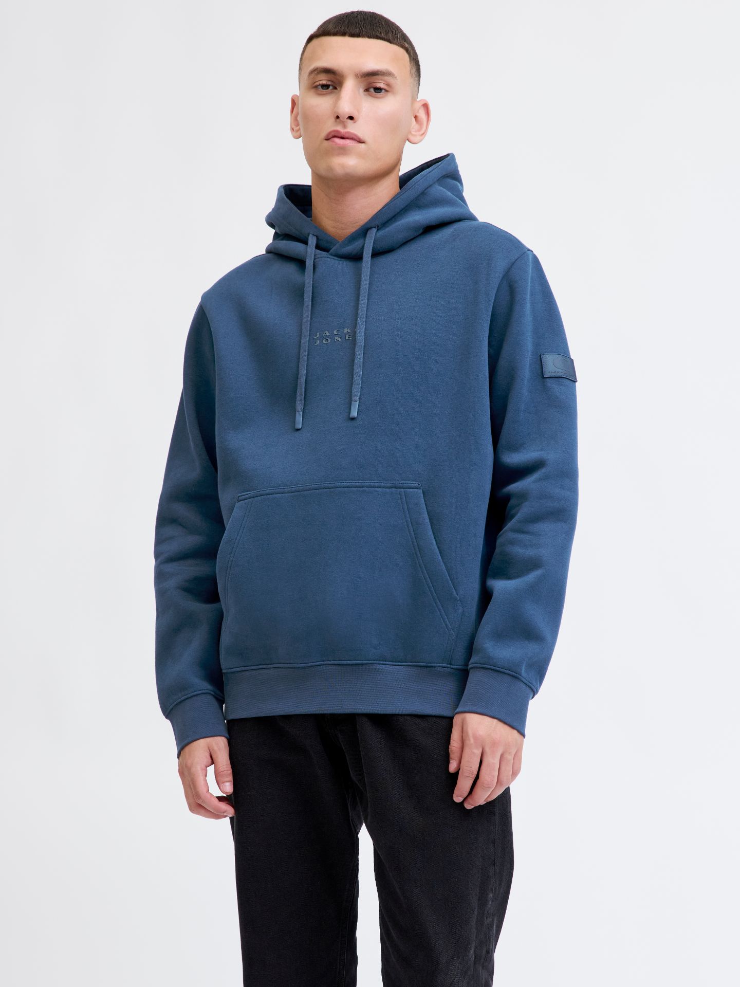 Hettegenser fra jack & jones. Genser med hette og brede knytebånd. Monkelomme forran. Flosset innside som gjør genseren ekstremt myk. Normal i størrelsen.