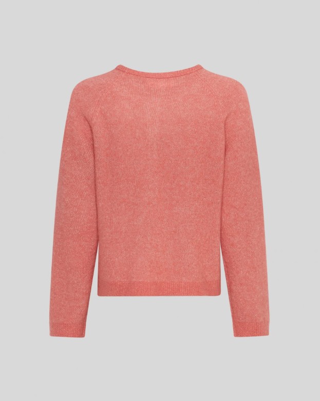 Strikket genser fra MSCH Copenhagen med rund hals og knappestolpe. Raglanfelling og lang arm. Rett i fasongen. 32% ull 32% Alpakka 30% polyamid 6% elastan
