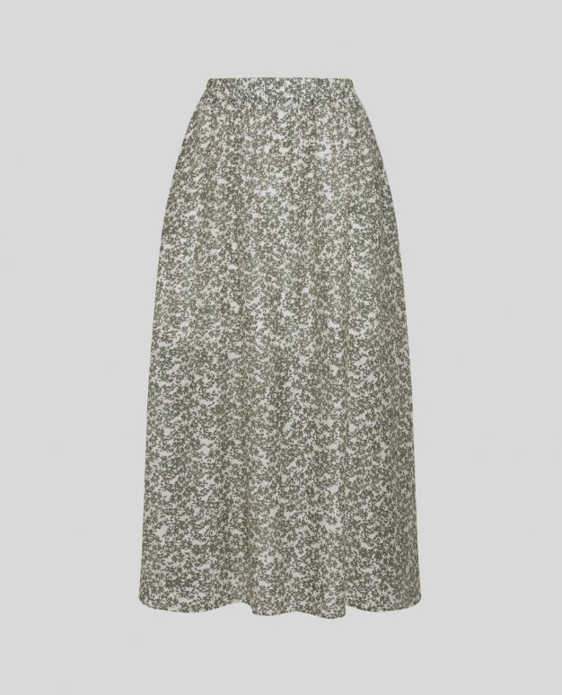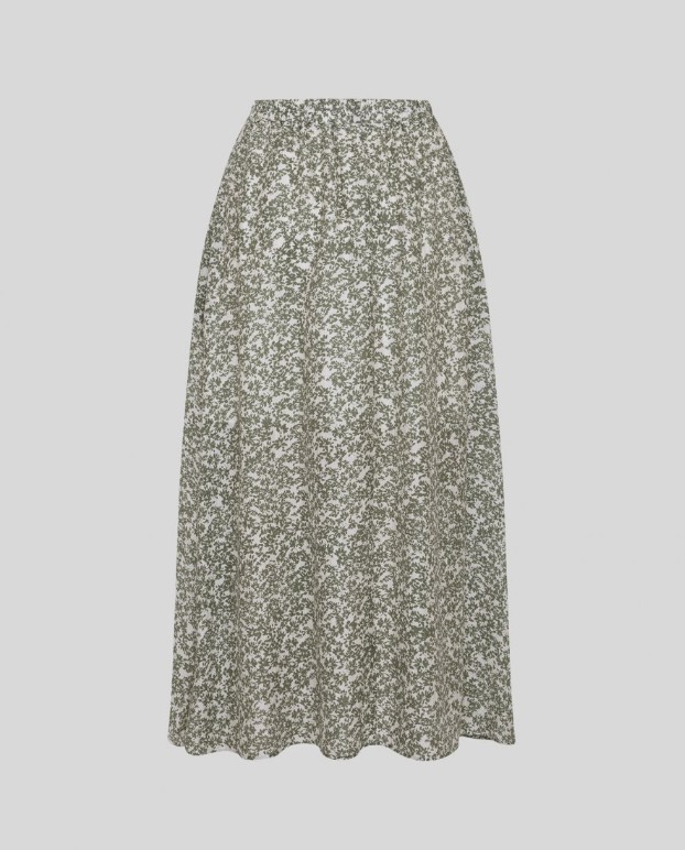 Langt blomstret skjørt fra MSCH Copenhagen. Lengde over anklene. Strikk i livet og lommer i sidene. Skjørtet er foret i øverste del slik at det ikke blir gjennomsiktig. 85% lyocel 15% polyamid