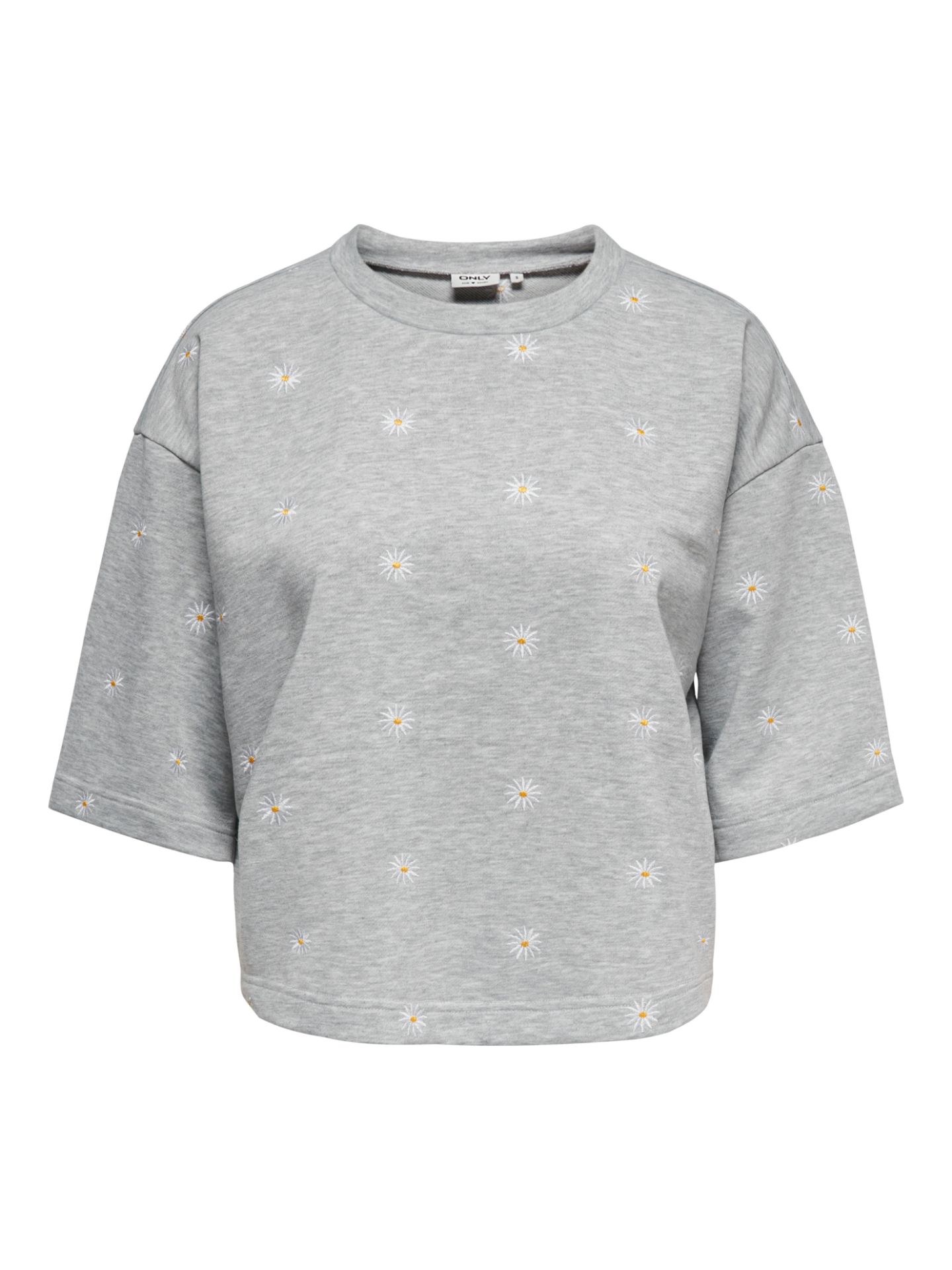 3/4 genser fra Only. En feminin og komfortabel sweatshirt med delikate små broderte blomster som gir et søtt og trendy utrykk. Toppen har en avslappet passform med rund hals og vide 3/4-ermer som gir et moderne og luftig preg. Den myke kvaliteten gjør den behagelig å ha på, og er perfekt til både hverdags, skole, jobb eller en avslappet helg. Style den med jeans for en casual look, eller kombiner med skjørt og sneakers for en mer feminin stil.