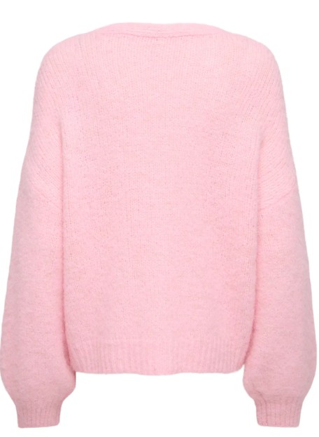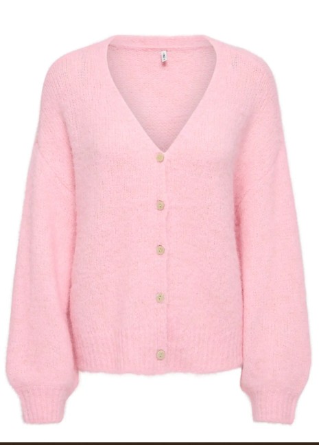 Cardigan fra Only. V hals og knepping foran. Litt vid modell. 49% polyester 21% akryl 21% Nylon 7% ull 2% elastan