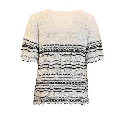 Mønterstrikket genser med kort arm. V-hals 100% bomull. Normal i størrelsen.