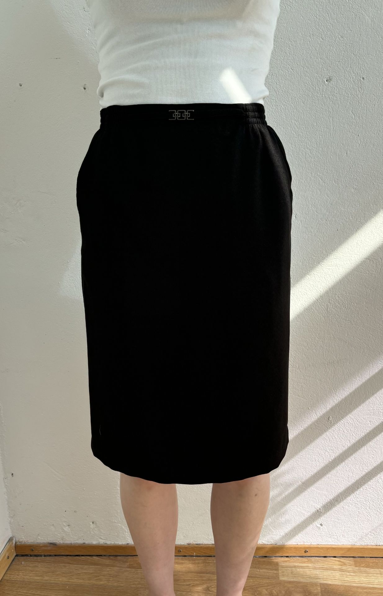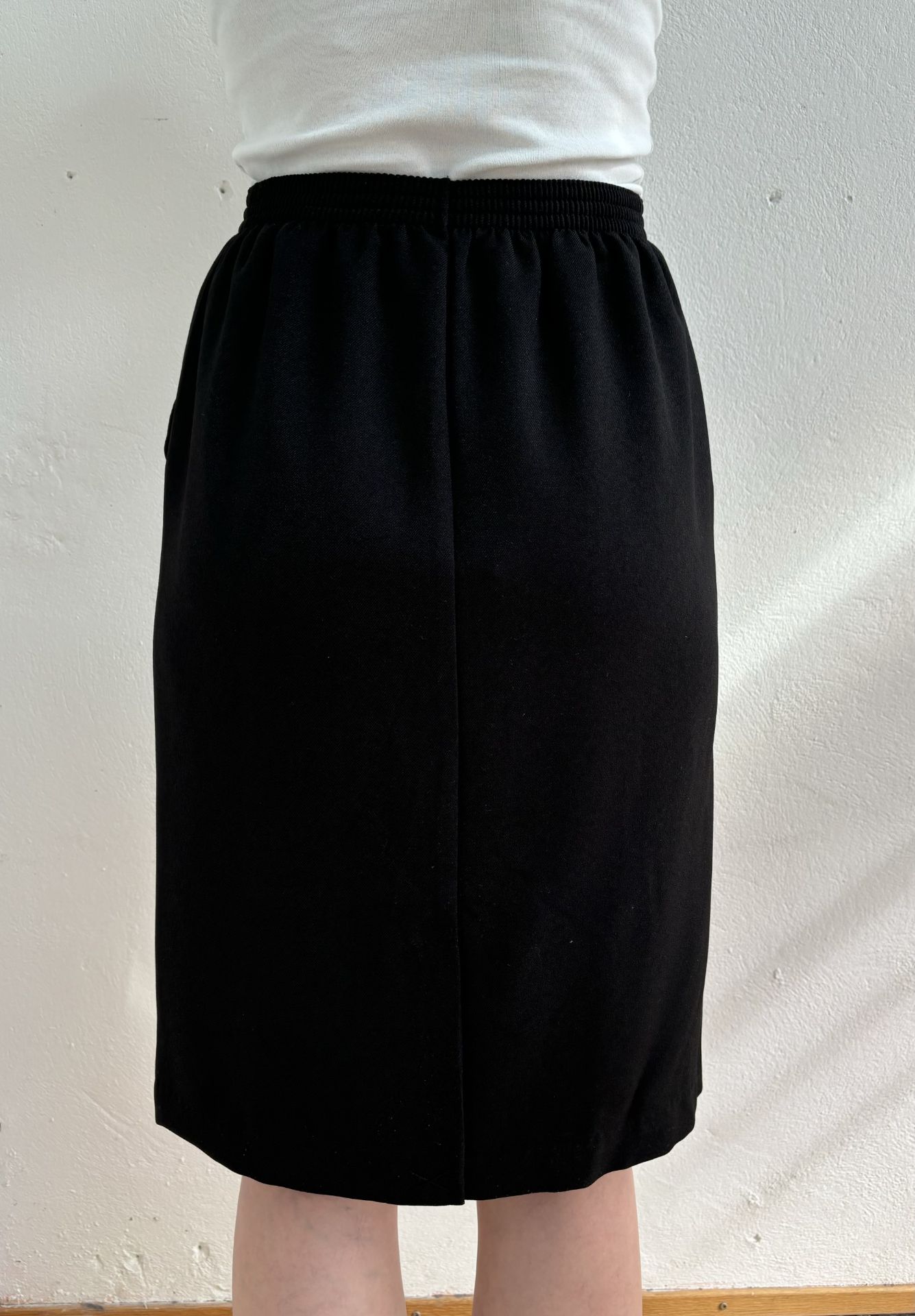 Klassisk skjørt med strikk i sidene og bak, skrå lommer i sidene. 62 cm langt.