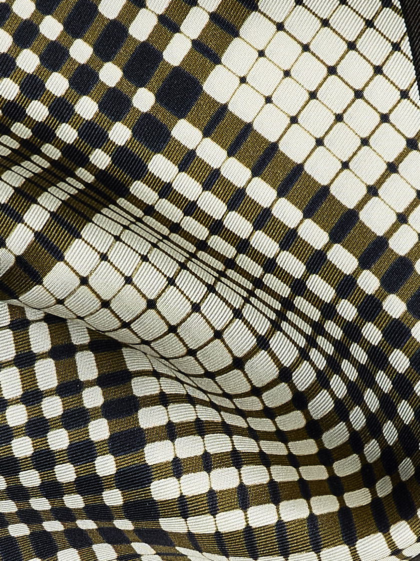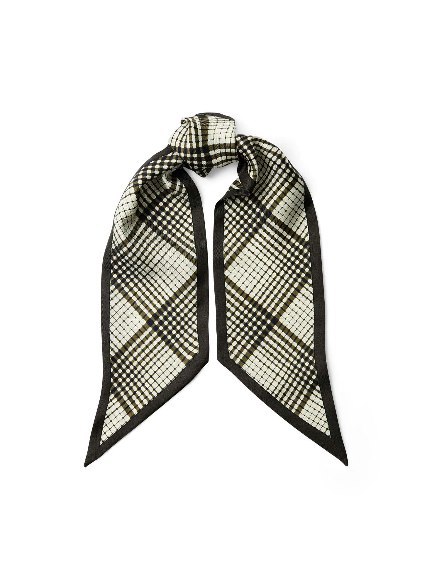 Skjerf fra Selected Femme i 100% silke. Skjerfet har et sjakkmønster i sjokolade brunt, kremhvit og grønt.