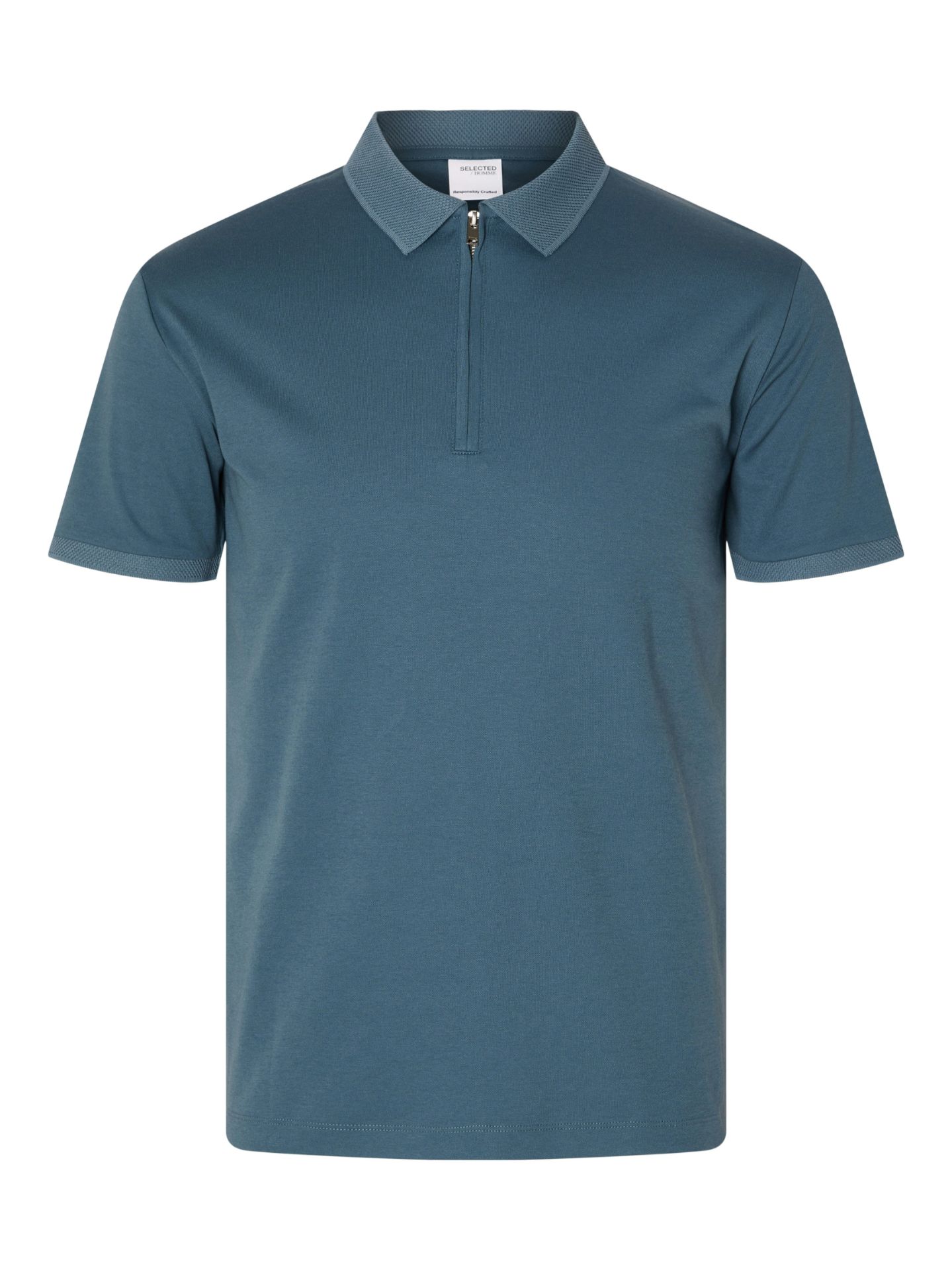 T-skjorte fra Selected Homme i et piquet aktig jersey stoff Krave og Zip 50% Bomull. 50% Polyester.