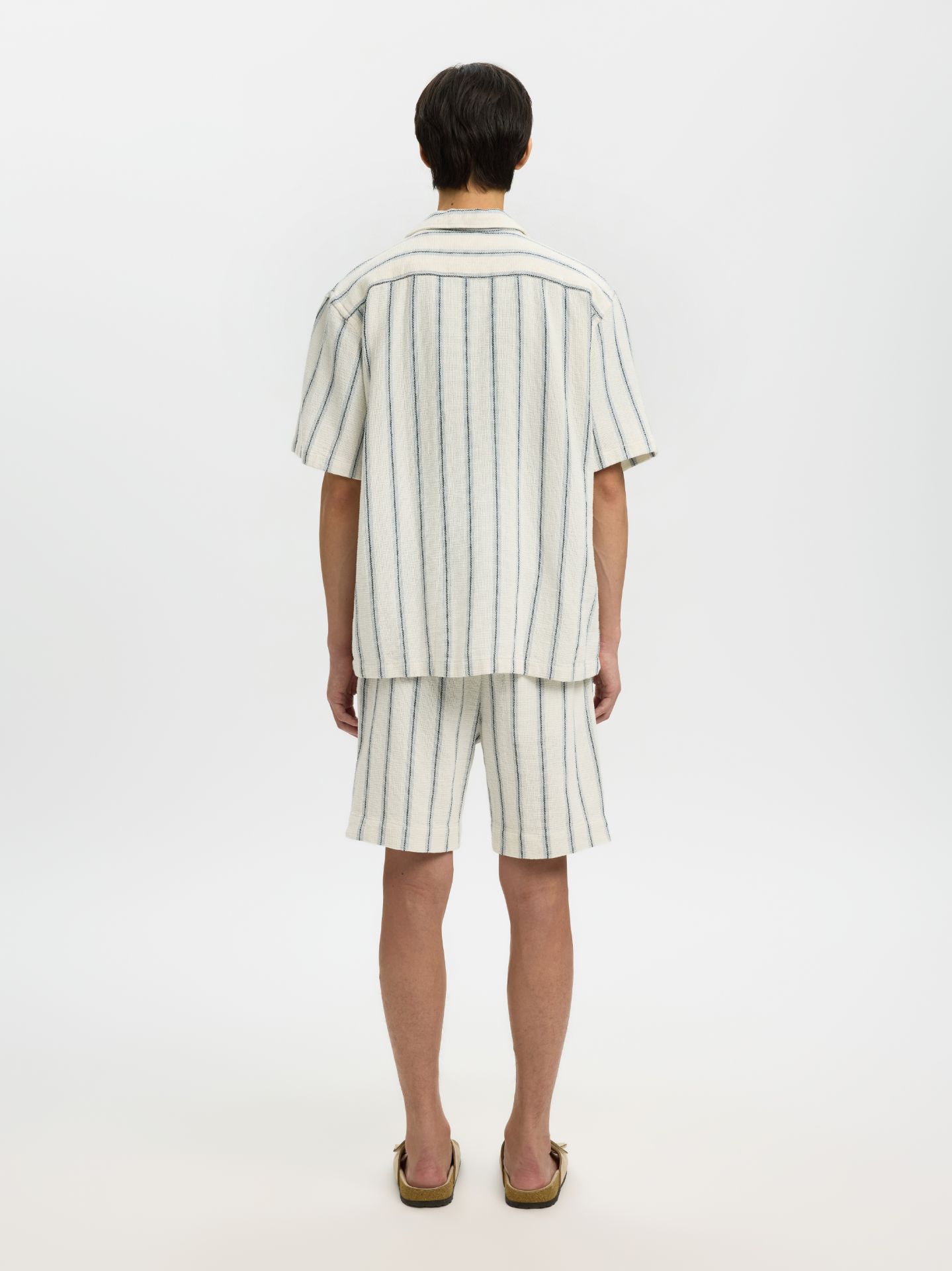 Twillvevd for en lett struktur Resort-krage Korte ermer Droppede skuldre Knappelukking foran Rett kant nederst Relaxed fit 100% bomull