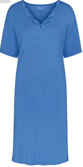 Kortermet nattkjole. V hals med blondekant. lengde midt på leggen. 94 % tencel 6% elastan