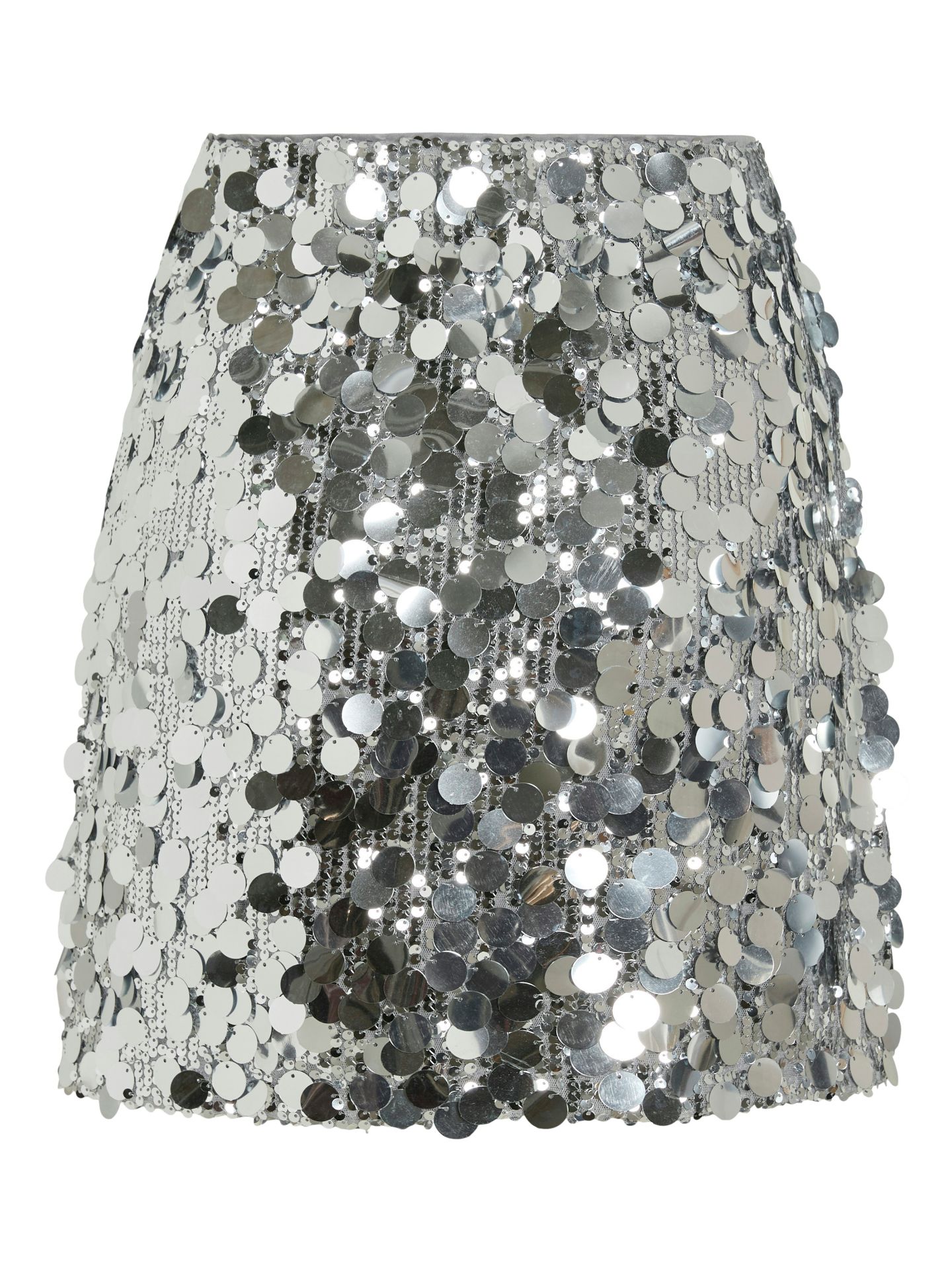 Festskjørt fra Vila Skjørt med paljetter. Strikk i midjen, med underskjørt i samme farge. Lår-lengde med stretch i. Normal i størrelsen. 100% polyester. Et fantastisk festlig skjørt som passer perfekt til julebord eller andre festligheter.
